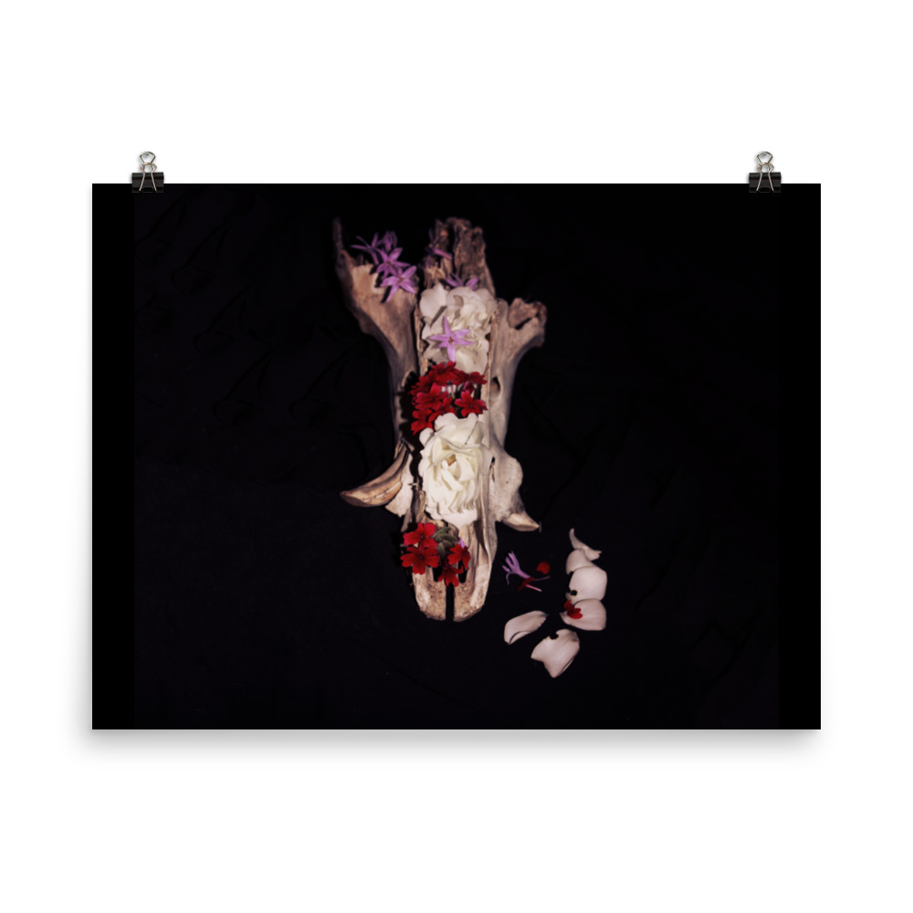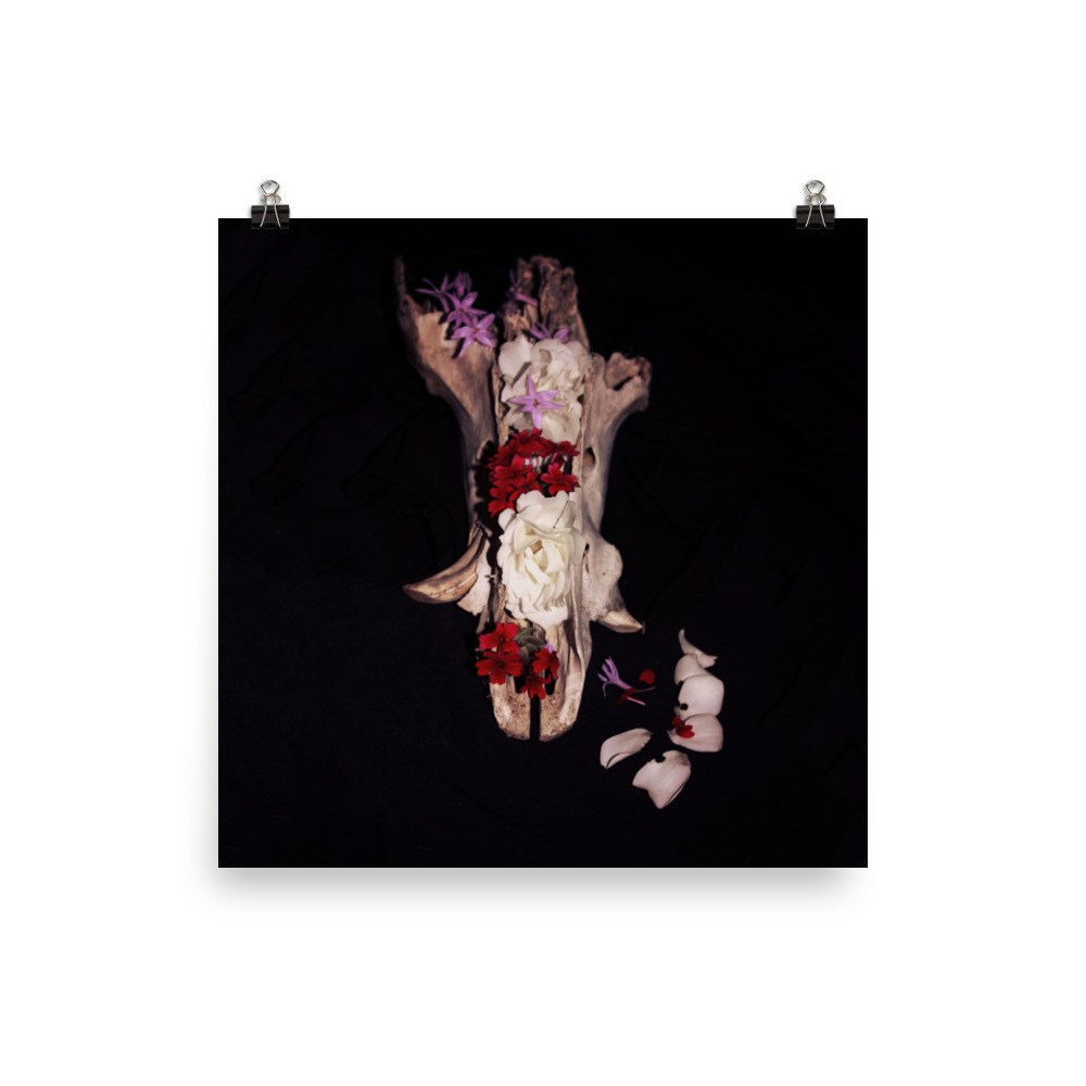 boar skull with flowers poster