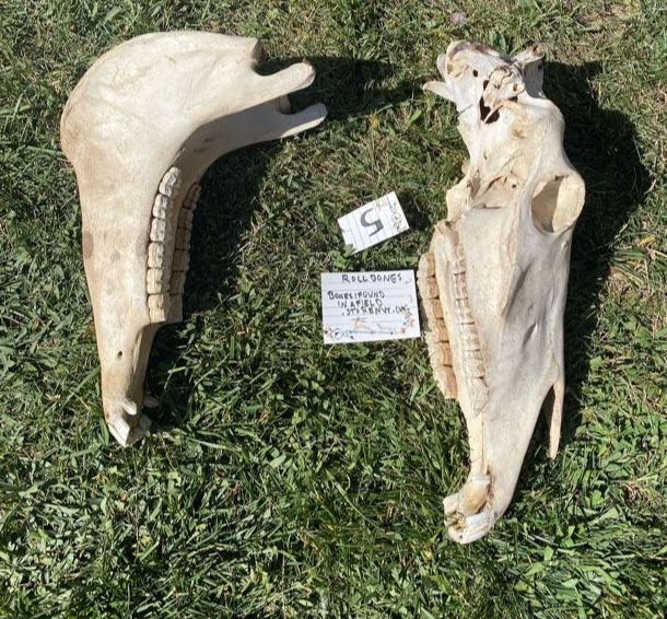 A horse skull with a mandible. I picked this up from a field with the permission of the landowner.