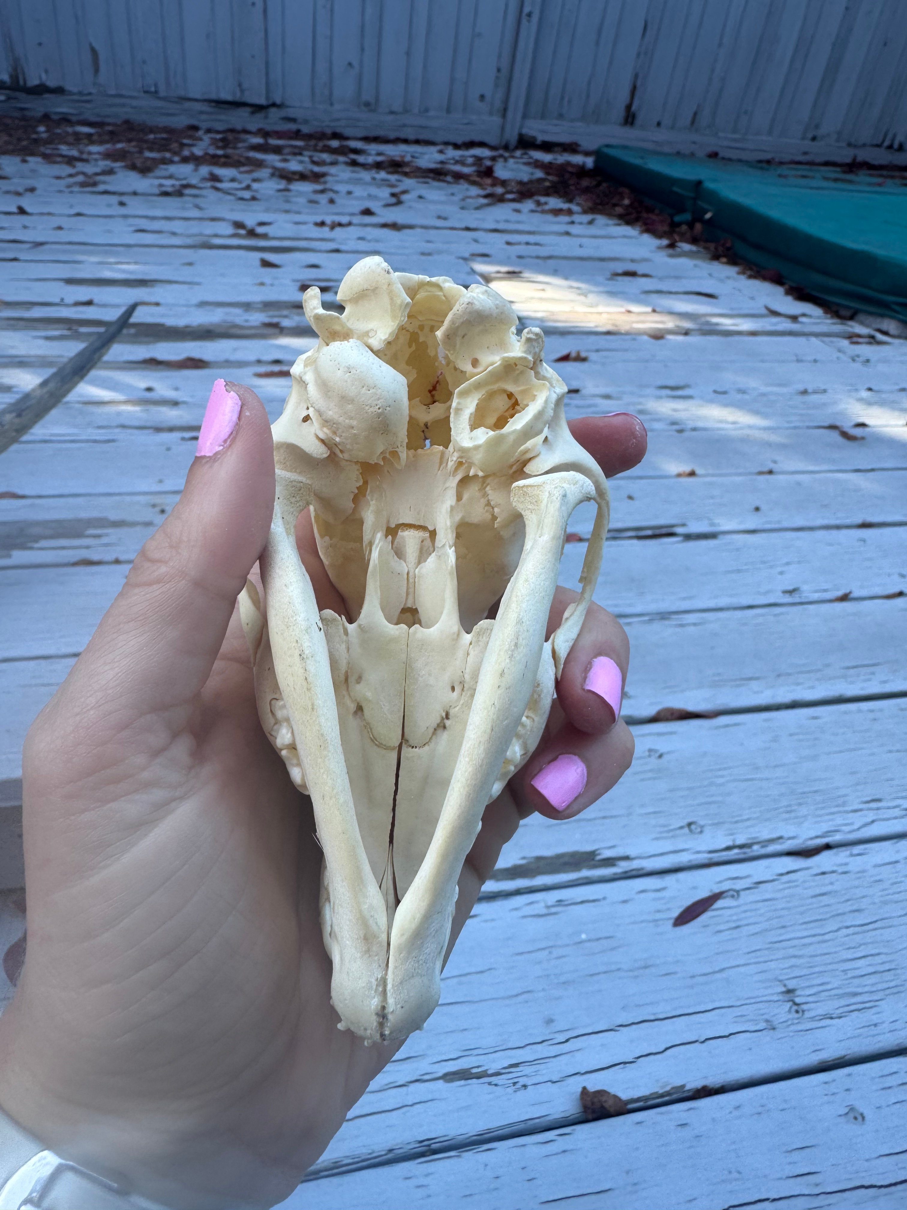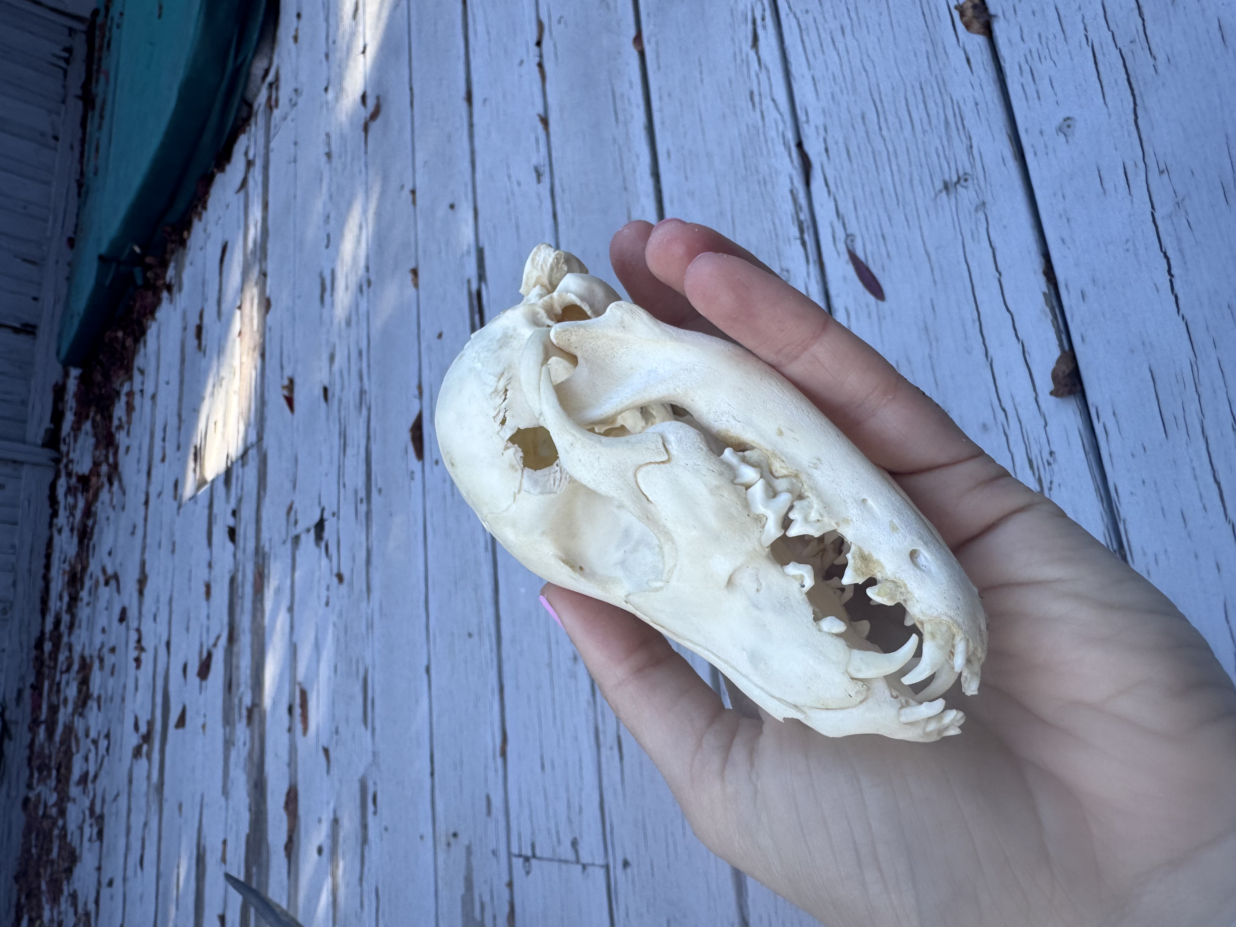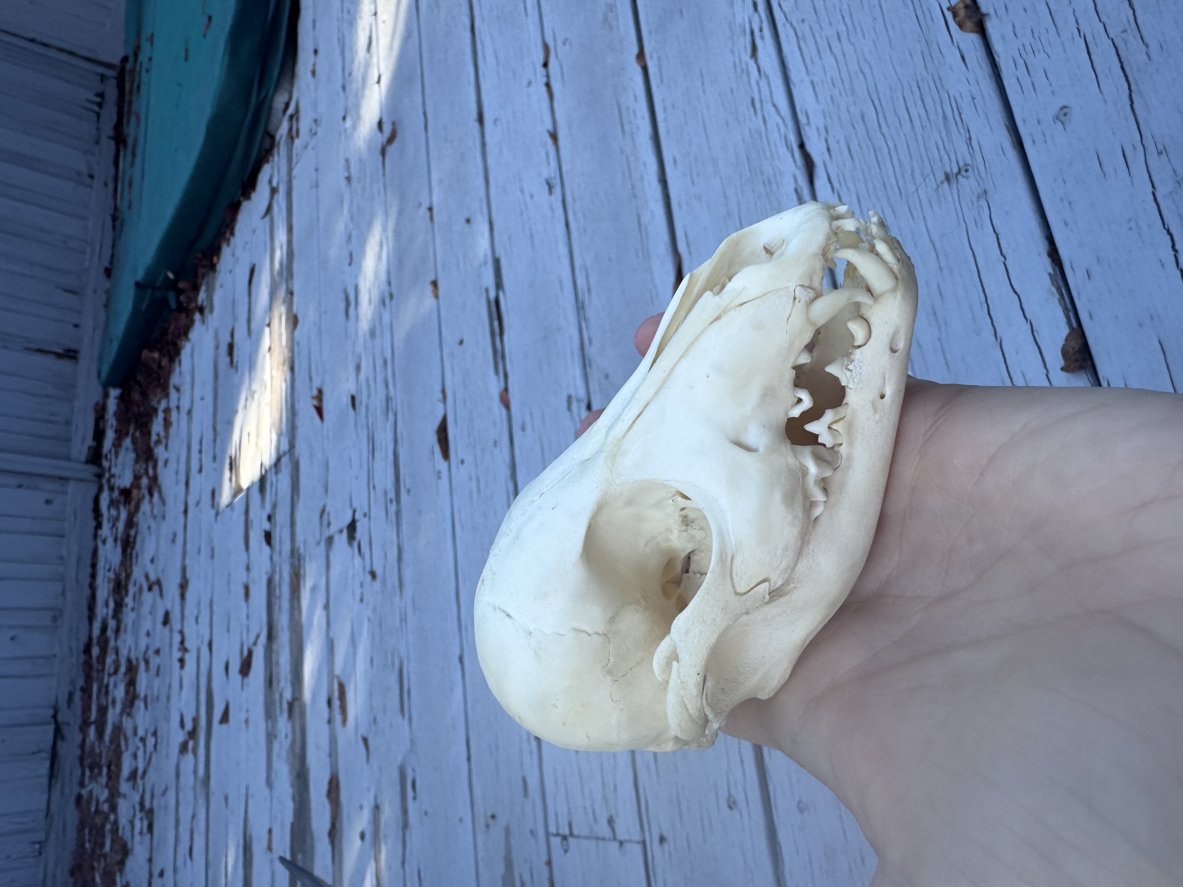 Check out the teeth! Definitely a baby canid. Not sure if it’s a fox, coyote or dog etc